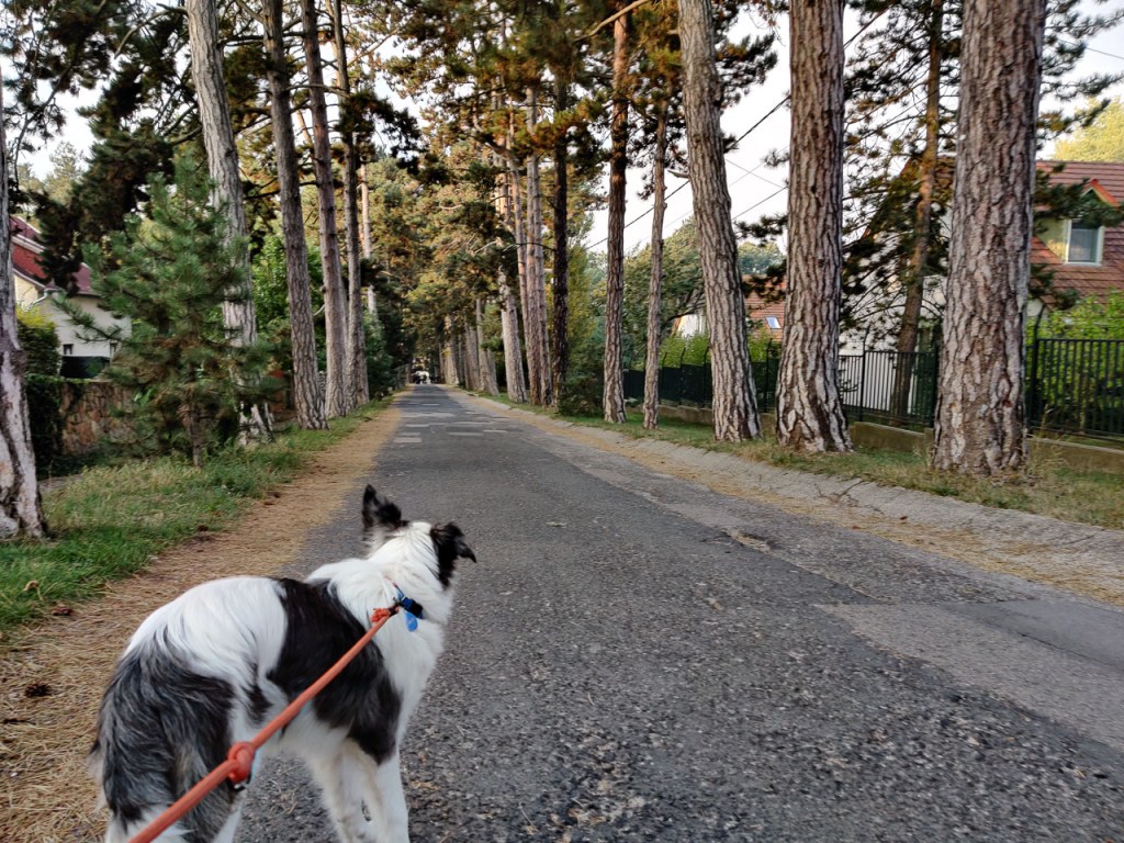 Lucát minden második héten, amikor nálam lakik, hétköznap reggelenként autóval elviszem a piliscsabai vasútállomásra, ahol ő vonatra ül (ami elviszi egészen az iskoláig). Kitaláltam, hogy Cimbi is jöjjön velünk, én pedig miután elköszönünk Lucától, elmegyek vele sétálni. Természetesen pórázzal, mivel az állomáson sokan vannak, és néha még óriási vonatok is előfordulnak. Négylábú kisfiamat sokat dicsértem már, de úgy kerek, ha nem csak a jókat mesélem; így most szót ejtek arról is, hogy pórázzal vezetve nem igazán engedelmes. Persze minden viszonyítás kérdése, bizonyára sok kutyagazda örülne, ha csak ennyire húzna a kedvence, de engem Cimbi úgy elkényeztetett, hogy nehezemre esik félpercenként rászólni.