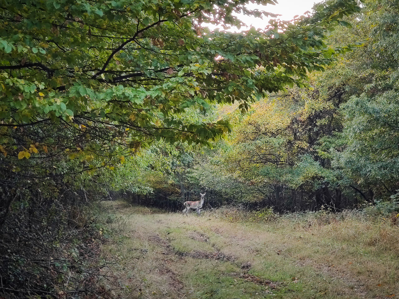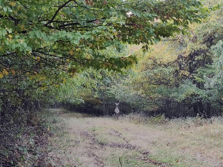 Ott egy szarvas! Nem mozdulok… csípőből lövöldözöm expozíció-töltényeimet. Két percre összeolvadunk az egymásra figyelésben. Aztán elmegy… mind-egy…