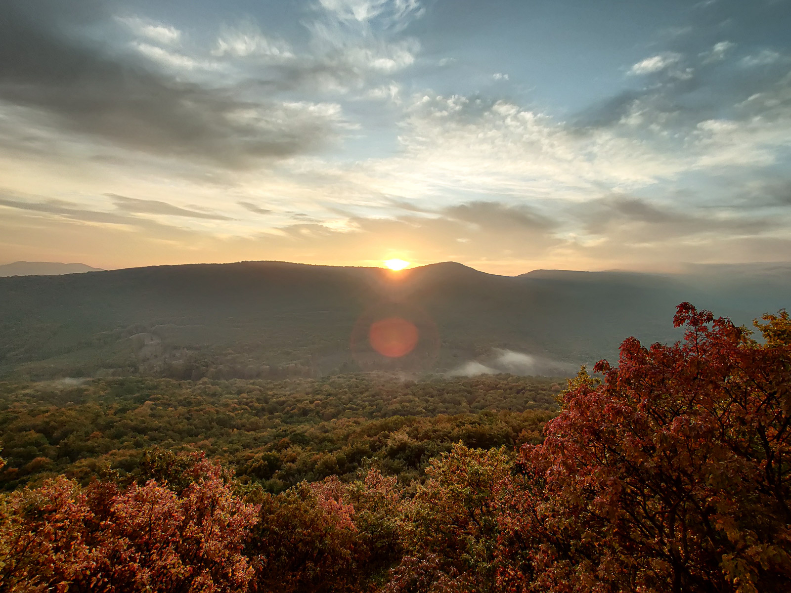 Akárcsak múlt héten, már az első kilométeren „megvan, amiért jöttem”: gyönyörű őszi napkelte-tájakat gyűjtögetek a telefonomba.
