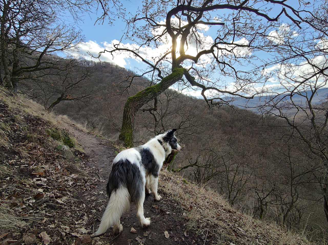 Mikor átemelem egy két méter magas drótkerítésen, és ő szófogadón leugrik a túloldalán, megvárva, hogy utánamásszak; mikor átugorja a patakot, és már futna tovább, de utána szólva, hogy „nem vagy szomjas? gyere, igyál!”, visszajön inni; mikor az elágazásoknál a térképet böngészve „megbeszéljük”, merre menjünk tovább; mikor meg-megállva visszanéz, hogy jövök-e – folyamatosan azt érezem, hogy tökéletesen bízunk egymásban, és értjük egymást. És ezek mind különösen „fájó-szép” emlékek lesznek másnap, mikor a hosszan elhúzódó epilepsziás(nak tűnő) rohamai közben már a végső búcsú képe is kirajzolódik előttem.*
