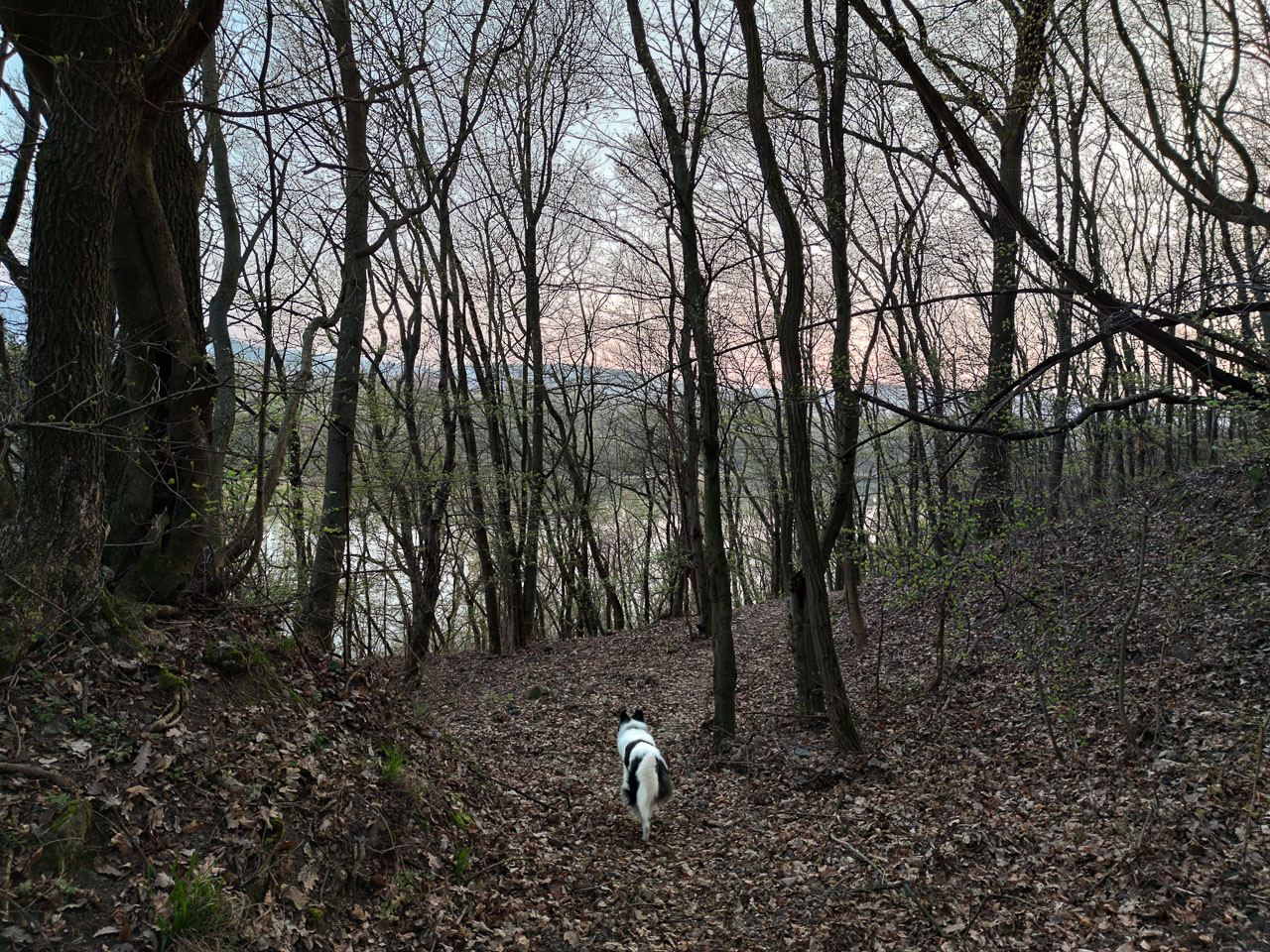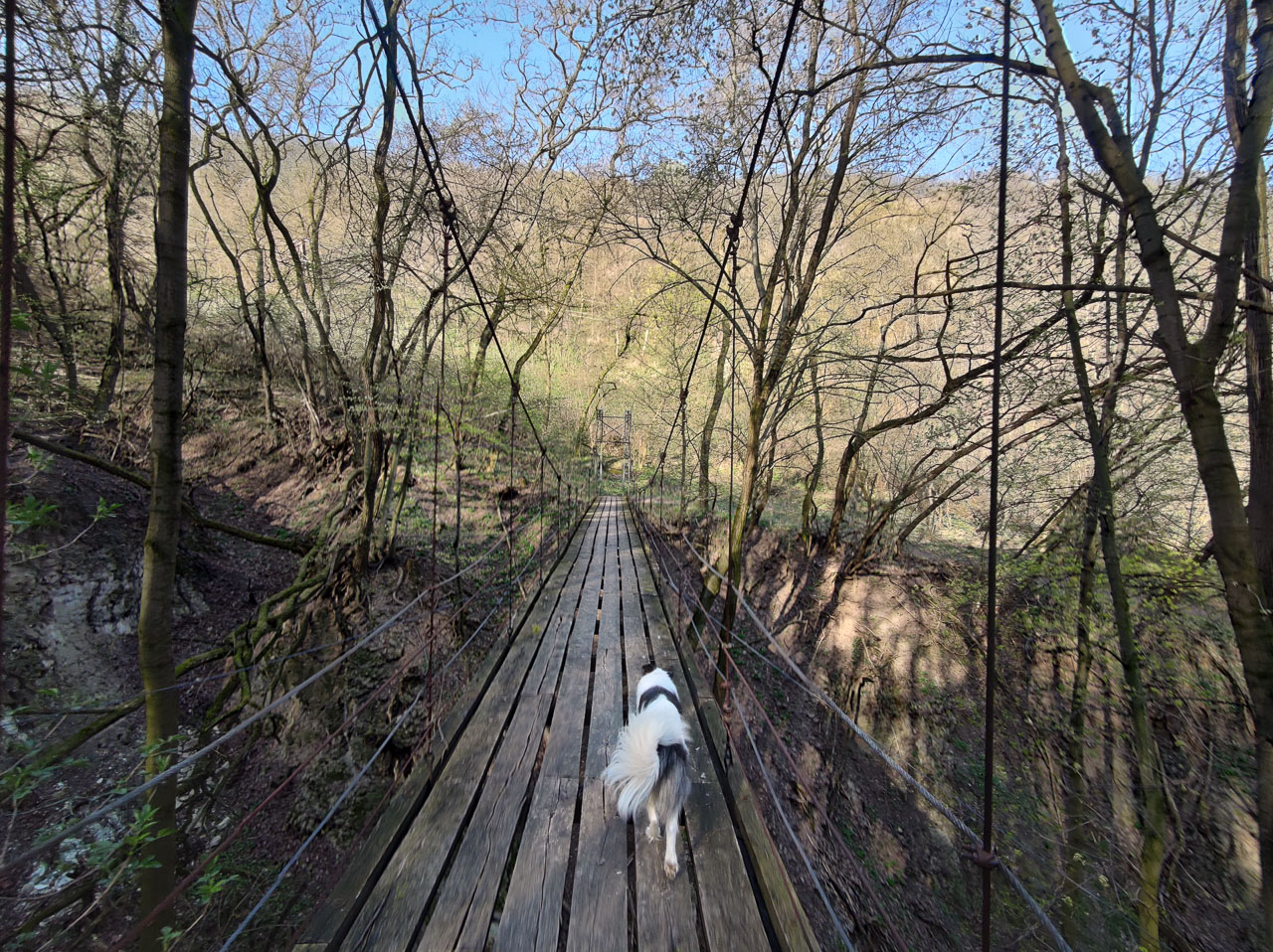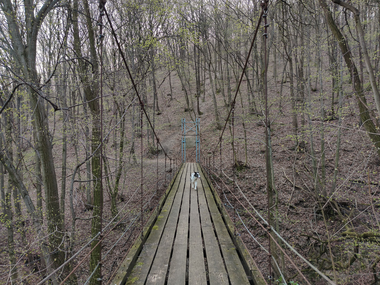 Néhány méternyire tőlünk patak csordogál, mellette futva Cimbi sűrűn tekintget irányába. Eszembe jut, hogy kalandtársam szomjas lehet. „Megállhatunk, ha szomjas vagy, igyál, megvárlak” – mondom bundás barátomnak; és intek egyet a vízfolyás irányába. Ő lesétál a partra, iszik, majd futunk tovább. Cimbi ehhez hasonló, csodás történésekkel ajándékoz meg nap mint nap, futásról futásra. És ezúttal „ráadásként” kapok még Duna-partot, függőhidat, kecskéket, lovakat, kis erdei kápolnát, meredek bányafalat, tavat, kunyhót, másik hidat, virágzó fákat, tavaszi illatokat, napsütést, no meg sok „leírhatatlanságot”…