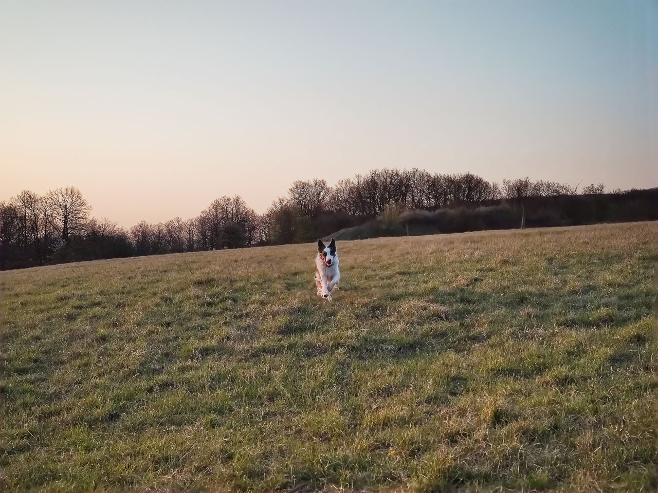 Épp csak elkezdtünk futni, de Cimbi már sebességet vált, és mintha puskából lőtték volna ki, az általam még érzékelhetetlen vadak nyomába ered. (Mielőtt esetleg valaki figyelmeztetne: tudom, ez így nem szabályos, és tisztában vagyok azzal is, hogy Cimbit egy vadász bármikor kilőheti. De ha mindezt nem engedném neki, nemcsak őt fosztanám meg a kergetés boldogságától; hanem magamat is a mosolytól, amit az ilyenkor Cimbiből feltörő kurjantásai csalnak az arcomra. Önző vagyok? Felelőtlen? Elfogadom, ha esetleg így gondolod, ahogyan te is fogadd el: számomra így teljes az életünk, tartson bármeddig). Az egyik szarvas társaitól elszakadva felém fut, az előttem elterülő mezőn keresztül. Gyönyörű látvány a vágtája a napkelte fényeiben; de én még mindig nem tanultam meg a sokadik leckét, és fotózni próbálok, ahelyett, hogy átadnám magam a jelen csodálatának.
