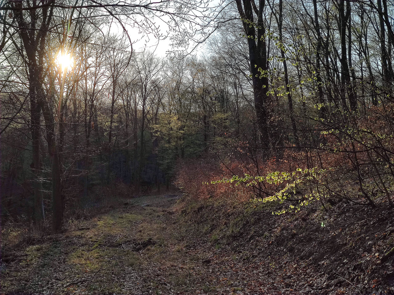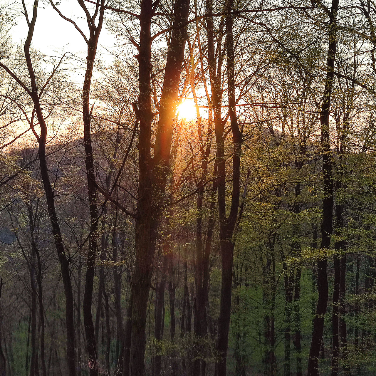 Gyönyörködöm a színekben: ahogyan a napkelte narancsvöröse harsányzöld rügyeket fakaszt, hogy aztán fehérre váltva a megvilágítást visszavegyen a szaturációból.