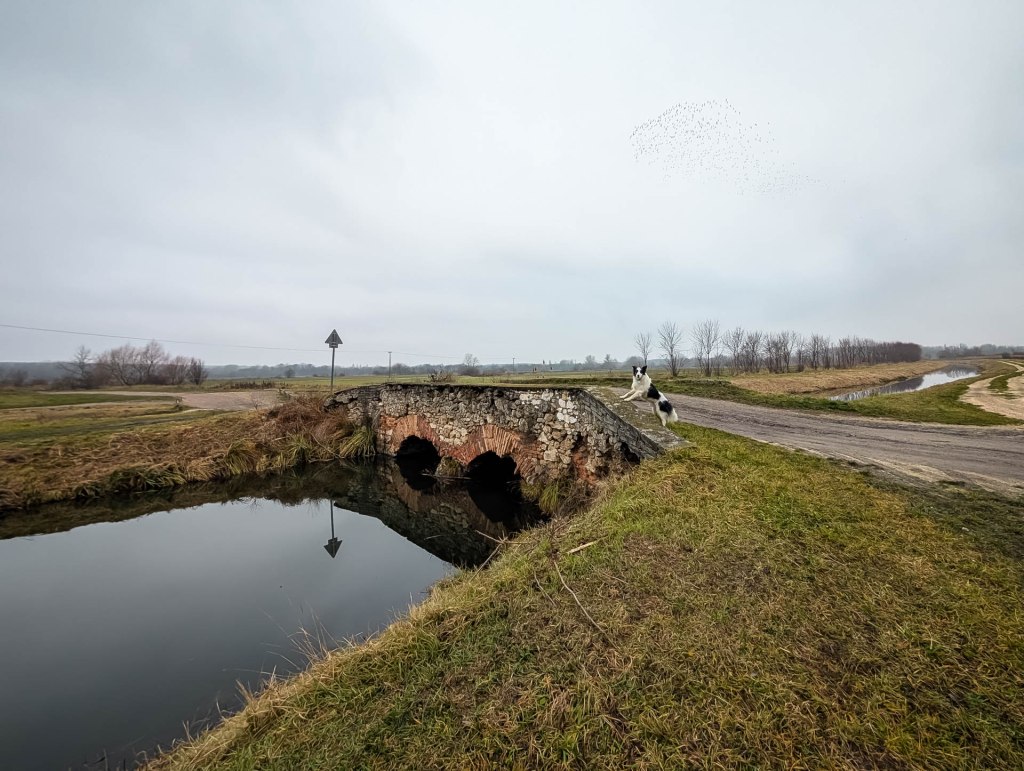 Az év végéhez közeledve négyszer is keresztezzük az Által-eret. Az első átkelésünk rögtön kalandosra sikerül: egy közműcső felett futó, szűk karbantartó járdán át. A fel- és lejutásnál fantasztikutyám ezúttal is együttműködően fogadja segítségemet. Később pedig kérésemre a Kétlyukú híd boltívei fölött profi modellként pózol. Ami engem illet: hogy végül általérek-e, nem tudom, de folyamatosan törekszem…