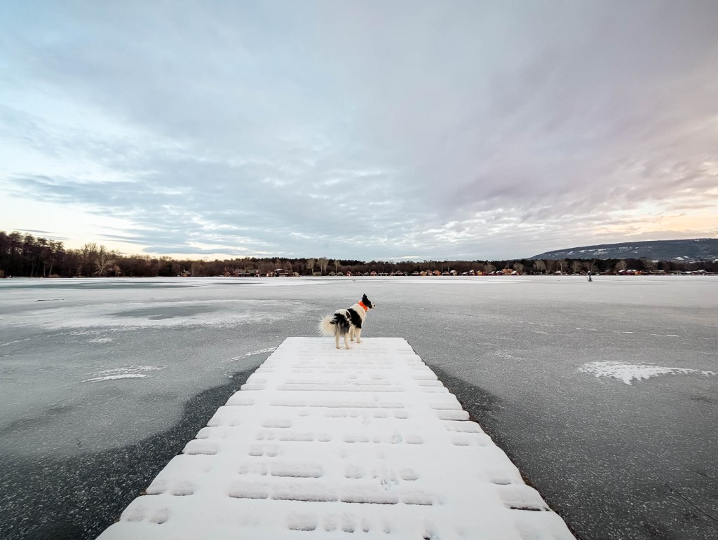 Egy a kapitalista birtokvédelem jegyében felállított kaput kicselezve átsétálunk mellette a patakon; de a Kis Kacsás-tónál beomlott (beomlasztott?) híd miatt újra körbe kell kerülnünk a Derítő-tavat. Bosszankodom, pedig nincs mit bánnom, ennél jobb helyen nem is lehetnénk, és négylábú mesterem lelkesen lobogó farkának zászlaja most is követésre ösztönöz. Egyfelől értem, hogy mindez magánterület, és létrehozói közösen védik a „teremtményüket”; másfelől meg lázad bennem a szlovén (magán)legelőkön jogszerűen átsétáló örökifjú… De bosszúságomért bőven kárpótol a ragyogó napsütésben talpam alatt roppanó hó, a tó hókristályokkal takart jege, a tóparti fák jégre dőlő koronája és a ritkán látott gazdagságú madárvilág.